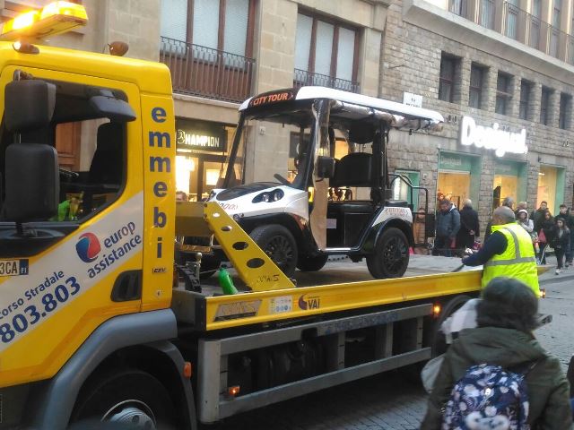 Trovato senza assicurazione e sequestrato dalla Polizia Municipale di Firenze. Si tratta di un caddy che svolge il servizio di trasporto turisti. Gli agenti del Reparto di Porta Romana hanno fermato il mezzo questa mattina in via Villani per un controllo e dagli accertamenti è emerso che non era in regola con la copertura assicurativa. Il mezzo è stato sequestrato ai fini della confisca, per il conducente è scattata la sanzione da 868 euro. Con il ritorno dei turisti sono ripresi anche i servizi di navette e risciò destinati ai visitatori e quindi anche i controlli della Polizia Municipale. Nell'ultimo mese gli agenti hanno multato una quindicina di questi mezzi perché in transito al di fuori dall'area consentita dal Regolamento Unesco e privi dei requisiti professionali richiesti per effettuare il servizio di trasporto turisti.