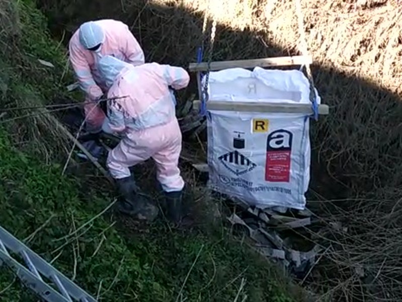 La segnalazione riguardava l' abbandono di rifiuti in via dei Girasoli/via Arno nord nella frazione di Casteldelbosco e precisamente all'interno del rio Bonello. Dalle prime informazioni raccolte, dagli agenti della Municipale, emergeva che erano stati abbandonati alcuni grandi sacchi nel letto del fiume. Al loro interno, del materiale variamente triturato, che dall'esame immediatamente disposto ed effettuato presso un laboratorio specializzato è poi risultato eternit quindi amianto. Si trattava dunque di una sostanza particolarmente pericolosa, le cui fibre sottili se inalate divengono causa di malattie gravissime e letali.