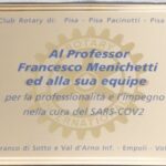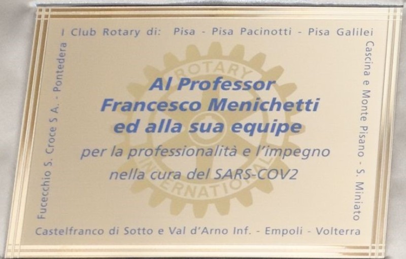 I Rotary Club della zona Valdarno Inferiore, Empolese e Pisana hanno consegnato al professore Francesco Menichetti, Direttore dell’ U.O. Malattie Infettive dell'Azienda Ospedaliero Universitaria Pisana, il "Paul Harris Fellow".