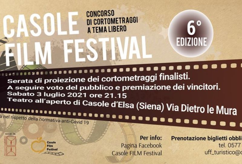 Sabato 3 luglio, dalle ore 21.15, si terrà la serata conclusiva, presso il teatro all’aperto di Casole, via Dietro Le Mura. Dopo la proiezione, i cortometraggi finalisti saranno sottoposti al voto del pubblico presente in teatro, proclamando i vincitori del Casole Film Festival.