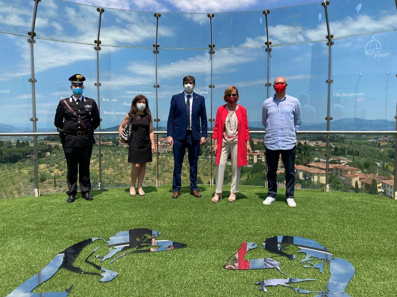 Successivamente il sindaco ha mostrato al Prefetto Alessandra Guidi uno dei punti di maggiore interesse di San Casciano: la Torre del Chianti e la sua terrazza panoramica che, dall’alto dei suoi 34 metri di altezza, permette di dominare la visione di gran parte della Toscana. La Torre del Chianti, esempio di archeologia industriale nato nel secondo dopoguerra, utilizzato originariamente come piezometro, è stata alcuni anni fa al centro di un’opera complessa di riqualificazione che ne ha valorizzato in forma contemporanea le funzioni promozionali, culturali ed espositive. La visita si è conclusa a Sant’Andrea in Percussina, con una breve visita presso la Casa Museo di Niccolò Machiavelli, dimora in cui l’intellettuale fiorentino visse il suo esilio da Firenze e compose il capolavoro il Principe tra il 1513 e il 1514. La visita è stata presenziata da Francesco Volpe, presidente del Consiglio comunale, Maria D’Alfonso, segretario generale del Comune e Mirko Rugi, Comandante della Stazione dei Carabinieri di San Casciano.