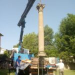 L'ingresso del Villone Puccini da via Brenta è di nuovo abbellito con le due colonne dedicate a Antonio Canova e Raffaello Sanzio. Dopo il restauro, stamani le colonne sono state riposizionate al loro posto.
