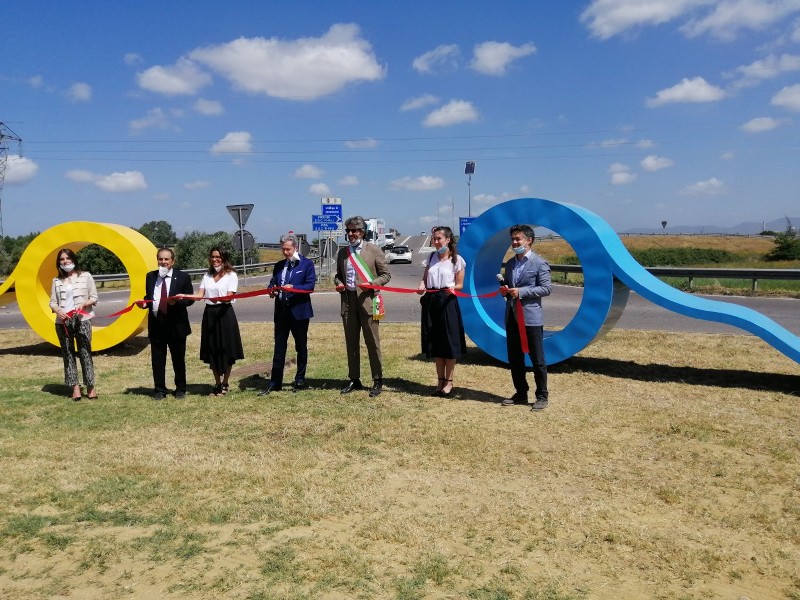 Oggi, martedì 22 giugno, è stato tagliato il nastro per la rotonda, sulla quale campeggiano le quattro bobine e anche due cartelli di benvenuto. All'incrocio tra via I Maggio e via De Gasperi erano presenti l'ad Irplast Fausto Cosi e l'assessore alle attività produttive Antonio Ponzo Pellegrini.