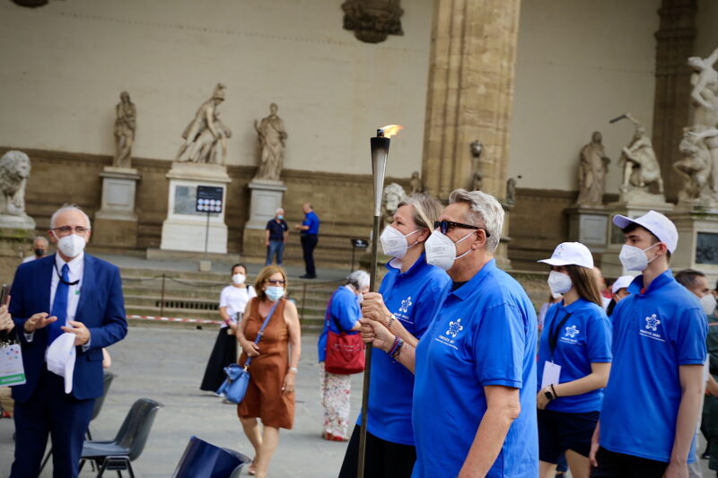Gianni De Magistris e Svetlana Korytova hanno acceso il braciere in Piazza della Signoria durante la cerimonia d'inizio delle Olimpiadi condotta dalla bravissima Carlotta Comparini e presenziata dal Sindaco Dario Nardella, dal consigliere delegato della Città Metropolitana Nicola Armentano, dai Presidenti della Regione e del Consiglio Regionale Eugenio Giani e Antonio Mazzeo, dal presidente del Consiglio comunale di Palazzo Vecchio Luca Milani, e da primi cittadini e rappresentanti istituzionali dei Comuni che hanno aderito alle Olimpiadi metropolitane.