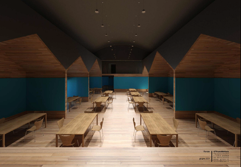 La nuova sala verrà interamente rivestita in legno e suddivisa in tante nicchie allineate lungo le pareti, evocative dei metati, i locali in cui si seccano le castagne. Saranno sia le stanze del nuovo Museo, che piccole zone in grado di ospitare tavoli e sedie, ad uso dei commensali di quella che sarà una ristopizzeria per soci, oltre ad un luogo per le riunioni delle associazioni, senza dimenticare la sua funzione di platea del nuovo cinema teatro.