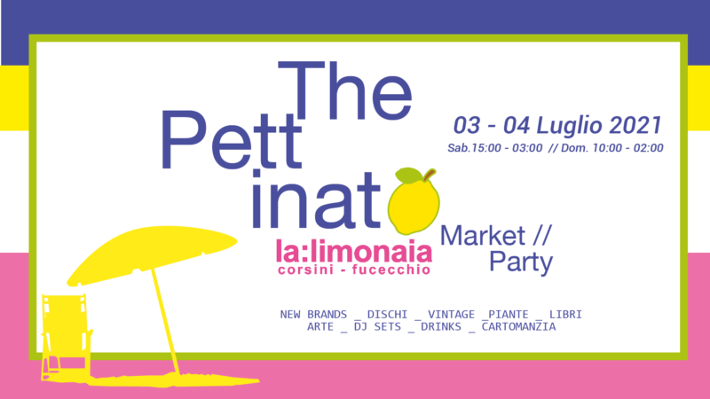 Il Pettinato market Party continua il suo itinerante tour in giro per le location più caratteristiche e giovanili della Toscana riconfermandosi un evento adatto a qualsiasi tipo di esigenza su un weekend estivo da passare all’insegna di divertimento per tutti proprio tutti. Non solo un market non solo una festa ma una vera e propria famiglia. La combo di un 'Pettinato al Limone' tra la Limonaia ed il market non sarà solo un evento ma un vero e proprio modo di essere.