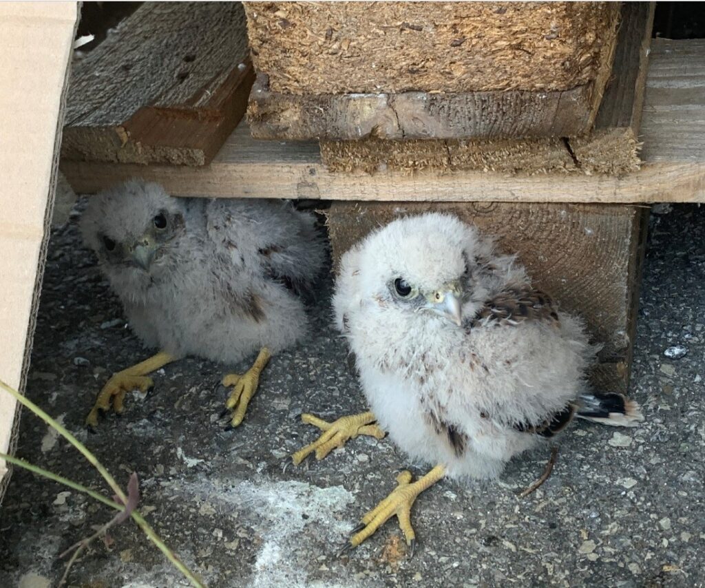 La scorsa settimana a Prato gli agenti della Polfer hanno recuperato, sotto alcuni pancali di un capannone utilizzato come magazzino, due piccoli falchi pellegrini, feriti a seguito della caduta dal nido.