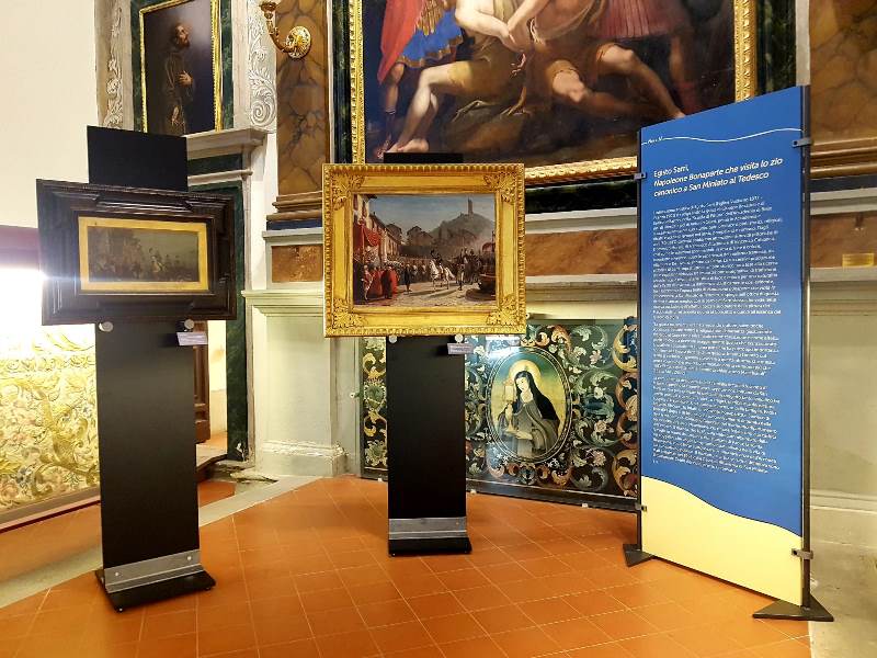 L’esposizione è un viaggio che ripercorre le tappe della formazione della memoria “speciale” che lega la città all'immaginario napoleonico. E’ stata inaugurata oggi, 29 giugno, giorno dell’anniversario dell’incontro tra il giovane Napoleone, generale in capo dell'Armata d'Italia, e il canonico Filippo, suo anziano parente del ramo toscano della famiglia, avvenuto proprio il 29 giugno 1796. Molto di questo immaginario si aggrega intorno ad alcuni oggetti e luoghi divenuti, nel corso di oltre due secoli di rielaborazione culturale, quasi iconici della sua identità. Dagli anni ’80 del secolo scorso le attività di alcuni artisti e importanti operatori culturali di San Miniato, incentrate sulla figura di Napoleone, hanno contribuito a infittire la trama delle iniziative commemorative e ad arricchire l'immaginario napoleonico delle loro opere. Tra questi ricoprono particolare rilevanza Dilvo Lotti, che dedica una parte cospicua della sua ultima produzione artistica a Napoleone, Marianella Marianelli con il racconto in plaquette incentrato sull'incontro del 29 giugno 1796 ed il romanzo storico di ispirazione napoleonica Ipotesi per un fantasma, infine i fratelli Taviani che dedicano al passaggio delle truppe francesi in Toscana diverse scene di Fiorile, uno dei loro film più intensi. L'esposizione è stata allestita all'interno del Museo del Conservatorio di Santa Chiara, luogo scelto perché mostra un legame avuto per secoli con la famiglia Buonaparte, oltre alla presenza nel Museo di due importanti testimonianze di questo legame, insieme alla volontà di valorizzare un luogo del Sistema Museale ancora poco toccato dai flussi turistici.
