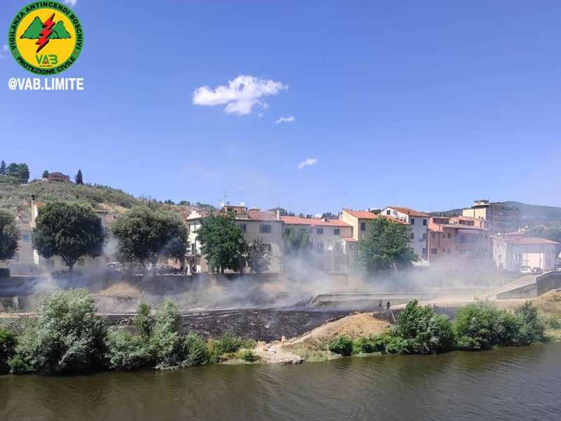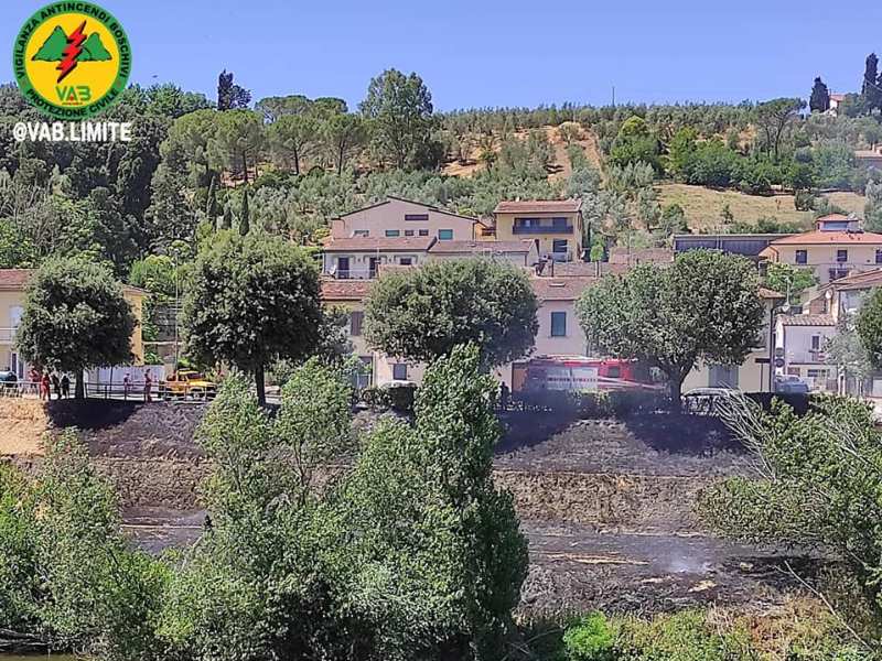 Incendio sull'argine dell'Arno a Capraia e Limite. All'altezza del lungarno Trento e Trieste un rogo è divampato prima delle 16. Sul posto i vigili del fuoco di Empoli e la Vab Limite sull'Arno con due mezzi. A causa del vento di oggi l'incendio si è rapidamente diffuso lungo il crinale falciato da poco. Le fiamme sono state per diversi minuti molto vicine alla strada. Per fortuna non si lamentano feriti.