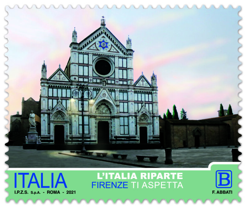 “L’Italia riparte…Firenze ti aspetta”. È questo l’incipit che celebra l'emissione, da parte del ministero dello Sviluppo economico, di un francobollo ordinario dedicato a Firenze all’interno della serie tematica “Il Patrimonio artistico e culturale italiano”. Il francobollo è stampato dall'Istituto Poligrafico e Zecca dello Stato Spa su carta bianca, con bozzetto a cura del Centro Filatelico della Direzione Operativa dell'Istituto Poligrafico e Zecca dello Stato. All’evento di presentazione erano presenti oggi gli assessori al Turismo Cecilia Del Re e allo Sport Cosimo Guccione, il direttore della Filiale Firenze 1 Poste Italiane Pio Violante, la presidente dell’Opera di Santa Croce Cristina Acidini, il rettore della Basilica di Santa Croce Padre Paolo Bocci, il direttore di Fondazione Sistema Toscana Francesco Palumbo, il consigliere delegato al Turismo della Città Metropolitana di Firenze Tommaso Triberti. A moderare l’evento è stato il segretario generale dell’Opera di Santa Croce Stefano Filipponi.