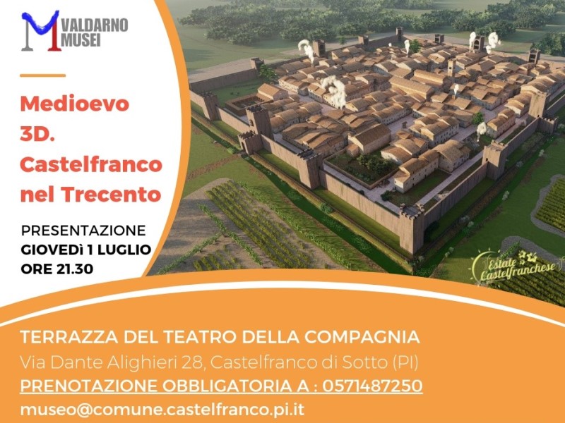 Si parte da Castelfranco di Sotto, giovedì 1° luglio, con l’incontro “Medioevo virtuale. Castelfranco nel Trecento”, presentazione della ricostruzione 3D del castello nella suo antico splendore e sperimentazione del sistema di visita assistita del centro storico del paese.