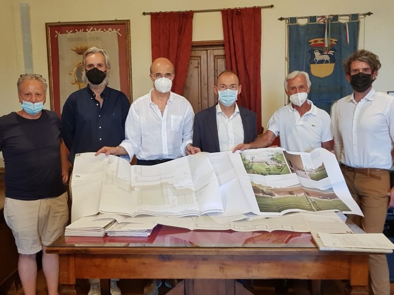 Dall’idea di un gruppo di tennisti, amatori e professionisti, uniti dalla passione per il gioco della racchetta, è nata una nuova prospettiva da condividere con l’amministrazione comunale. Alcuni cittadini, iscritti al neonato circolo, Simone Rosi, Cristiano Cosi e Gianfranco Rosi, hanno consegnato nei giorni scorsi al sindaco Paolo Sottani e agli assessori Paolo Stecchi e Lorenzo Lotti nella sala consiliare del palazzo comunale lo studio di fattibilità di una nuova struttura da realizzare nell’area adiacente alla piscina comunale e agli impianti sportivi esistenti situati in via Colognole.