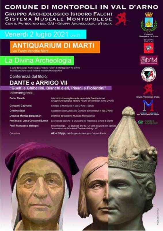 Il Gruppo Archeologico "Isidoro Falchi", in collaborazione con il Sistema Museale Montopolese, ha organizzato un incontro dal titolo 'La Divina Archeologia', con interventi su “Dante e Arrigo VII. Guelfi e Ghibellini, Bianchi e Neri, Pisani e Fiorentini”.