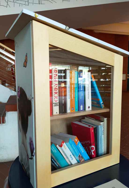All’interno, tanti libri in regalo, che sono pervenuti in dono alla biblioteca dai lettori.