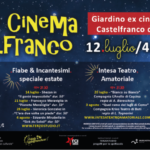 L’arena del “Nuovo Cinema Castelfranco” ospiterà inoltre quattro spettacoli teatrali adatti a tutta la famiglia, organizzati da Terzo Studio (14, 21, 28 luglio e 4 agosto, dalle 21,30). Dallo show di magia e fachirismo “Shezan. Il genio impossibile” allo spettacolo di visual commedy “Sick du Solei” di Edoardo Mirabella, uno dei più conosciuti interpreti del teatro di strada italiano (programma completo www.terzostudio.it).