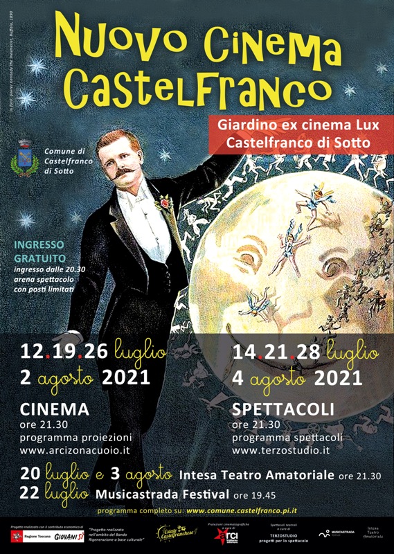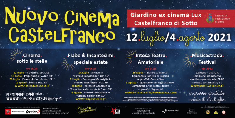 Il progetto “Nuovo Cinema Castelfranco” riaccende uno dei “luoghi del cuore” di Castelfranco di Sotto, l’Ex Cinema Lux, chiuso da quasi 20 anni, e riapre il suo giardino per ospitare spettacoli teatrali, cinema all’aperto, musica e intrattenimento per bambini.