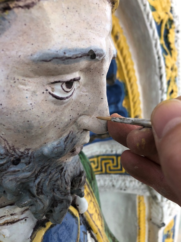 Il restauro realizzato da Filippo Tattini sulla terracotta invetriata di Giovanni Della Robbia