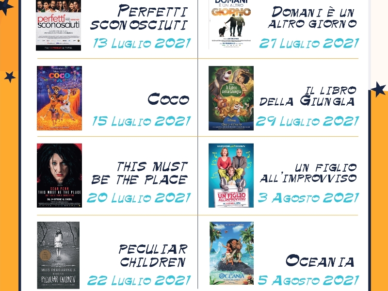 Sono otto le proiezioni previste dal 13 luglio al 5 agosto, con inizio alle ore 21,00.