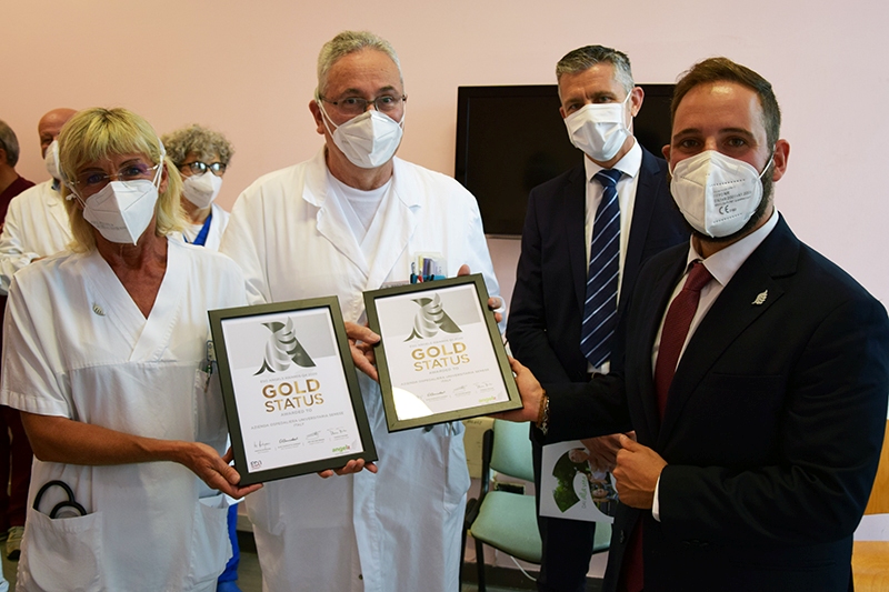 Prestigioso riconoscimento internazionale per il team multidisciplinare del percorso Stroke dell’Azienda ospedaliero-universitaria Senese. Per l’European Stroke Organisation, in base ai criteri della piattaforma dei Premi Angels ESO, l’Aou Senese è centro oro, con il trattamento di oltre il 50% dei pazienti entro 60 minuti per la fibrinolisi sistemica ed entro 90 minuti per la trombectomia meccanica. Il riconoscimento è stato consegnato dal dottor Lorenzo Bazzani, Angels Consultant, al team del percorso Stroke, formato dalla Stroke Unit diretta dal professor Giuseppe Martini e dalla Neuroradiologia Interventistica diretta dalla dottoressa Sandra Bracco. Presente alla consegna il direttore generale dell’Aou Senese, il professor Antonio Barretta, e tutti i professionisti che collaborano fattivamente al percorso Stroke.