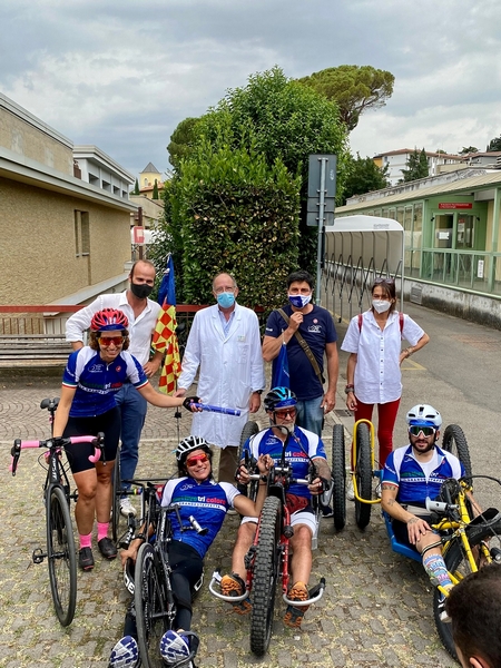 La ‘carovana’ è stata accolta all’ingresso dell’Unità Spinale dell’Azienda Ospedaliero-Universitaria Careggi dal Prof. Giulio Del Popolo e parte della sua equipe, insieme ad Andrea Vannucci, consigliere regionale e vicesegretario della Commissione 3 Tutela della Salute, Politiche Sociali e Terzo Settore, Gioia Brogi, presidente del Gruppo Sportivo Unità Spinale Firenze Onlus, Piero Amati, coordinatore delle attività sportive Gruppo Sportivo Unità Spinale.