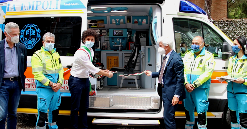 Da oggi a Empoli una terapia intensiva su ruote darà ancora più sicurezza e interventi tempestivi nel momento del bisogno. Dai frutti di una raccolta fondi partita durante l'emergenza Covid, è stata inaugurata nella cornice esterna della Fondazione Vincenzo Chiarugi, una speciale ambulanza della Misericordia di Empoli, organizzata in collaborazione con l'Asl Toscana Centro. Una catena di solidarietà che, tramite la partecipazione di cittadini e aziende, arrivò a sfiorare 800mila euro, serviti a dotare di attrezzature mediche l'ospedale San Giuseppe per far fronte al Coronavirus ma anche a nuove importanti attrezzature per il volontariato, come l'ambulanza a biocontenimento, fresca di presentazione.