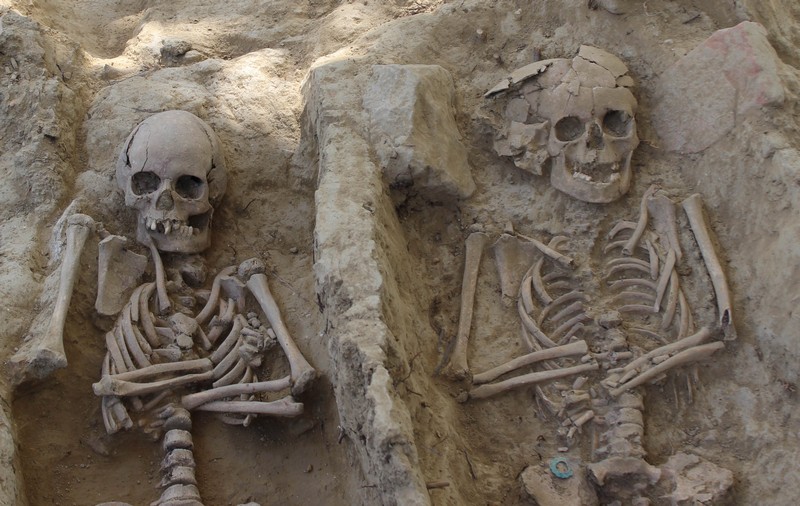 La particolarità di questa scoperta sta nel fatto che questa tomba multipla (due sepolture sono insieme a una terza posta a un livello leggermente inferiore) possa appartenere a tre componenti giovanissimi, due maschi e una femmina, della stessa famiglia. Probabilmente fratelli e sorella morti improvvisamente, forse a causa di un’epidemia.