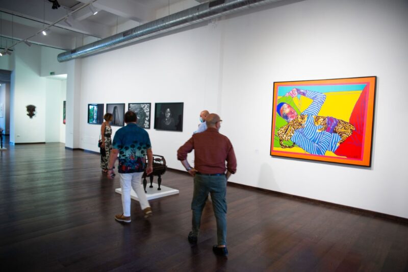 Il gruppo di artisti riuniti per l’occasione testimonia nel lavoro un postmedialismo che non è assimilazione di uno status occidentale del dibattito artistico, ma una condizione genetica, legata alla dimensione magica dell’agire artistico, inscindibile dal loro processo creativo. Da qui l’utilizzo libero e incondizionato dei media e dei supporti, di materiali e tecniche, generi e registri, spesso incrociate sinergicamente nella stessa opera, dove cadono le categorie e le distinzioni fra arti dello spazio e arti del tempo e dove gli artifici logico-geometrici dalla prospettiva agli schemi gestaltici, saltano a beneficio di un all-over espressivo che investe le superfici interamente. Dal registro documentario e lo spirito antropologico che guarda alla storia più che alla cronaca delle fotografie del maliano Malick Sidibè, passando per le opere pionieristiche di “padri e madri” dell’arte africana contemporanea come l’ivoriano Frédéric Bruly Bouabré e le sue “postcards” pitto-grafiche legate al popolo Beté, il congolese Chéri Samba con i suoi dipinti legati tematicamente alla sua terra, la senegalese Seni Awa Camara con le sue sculture realizzate ancora seguendo riti sciamanici nella foresta. Trovano posto sul palcoscenico della mostra le maschere e i troni, sublimazioni plastiche dei conflitti civili mozambichiani, di Gonçalo Mabunda a fianco della dimensione più espressivamente eversiva e stilisticamente alla moda di figure cosmopolite come l’ivoriano Aboudia, affermatosi prepotentemente nel panorama artistico internazionale, e quelle del connazionale Armand Boua e del camerunense Bernard Ajarb. Gli altri artisti che hanno esposto le loro opere sono Nu Barreto, Soly Cissé, Lovemore Kambudzi e Esther Mahalangu.