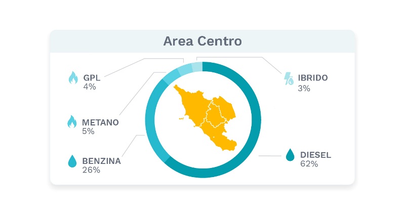 Parlando di tipologie di vetture le più amate dagli italiani nell’Italia centrale sono i crossover. Questa tipologia è stata scelta nel 2021 dal 22% dei clienti nel centro in maniera uniforme. Al secondo posto le utilitarie (17,4%) che perdono oltre due punti percentuale rispetto al 2020. Chiudono il podio le berline, con il 17,1%, in crescita rispetto al recente passato e molto amate nelle Marche. Fuori dal podio le citycar al 12%, che però brillano nel Lazio grazie a grandi risultati di smart nella classifica delle auto usate a Roma. Crollo verticale per i SUV (8%), che pagano la grande crescita dei crossover e si trovano dietro anche alle station wagon (10%) e alle monovolume (9%). Dati risicati per cabrio, coupé, spider e multispazio, che insieme non vanno oltre al 5% delle vendite.