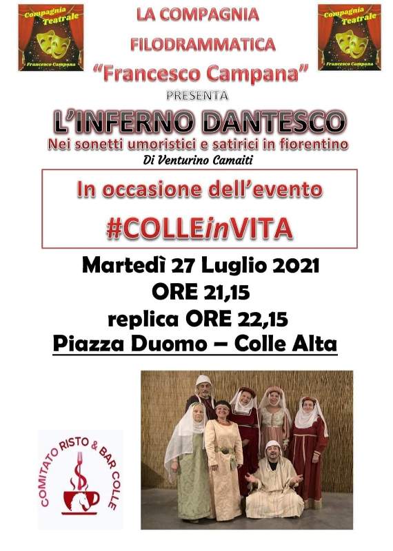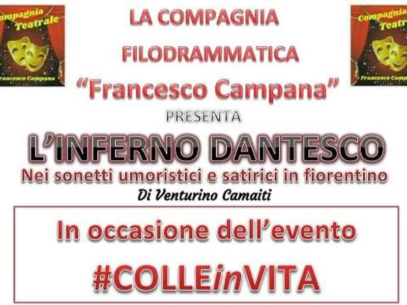 In occasione dell’evento “Colle In Vita” del 27 Luglio la Compagnia Filodrammatica Francesco Campana di Colle di Val D’Elsa presenterà dei sonetti umoristici e satirici sull’inferno Dantesco di Venturino Camaiti.