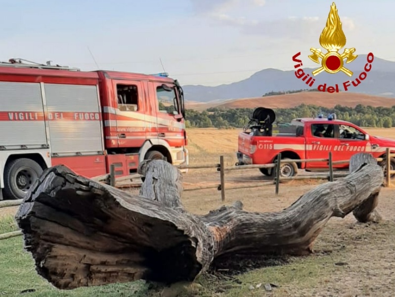 Infine un altro incendio è divampato nel Senese, nell'area protetta della Quercia delle Checche nel comune di Pienza. Le fiamme hanno coinvolto un grosso ramo, da anni caduto a terra dalla quercia secolare. Sul posto i vigili del fuoco del comando di Siena, distaccamento di Montepulciano, che hanno spento le fiamme intervenendo con due automezzi e 5 unità.
