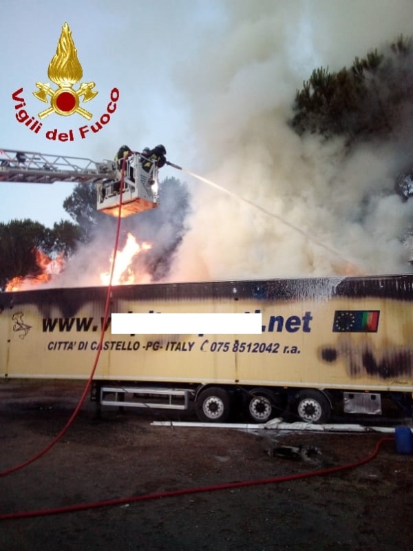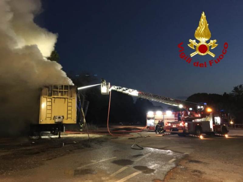 I vigili del fuoco del comandi di Pisa e di Livorno sono intervenuti intorno alle 5 del mattino sulla SS1 Aurelia in località Coltano di Pisa, per l'incendio di un semirimorchio.