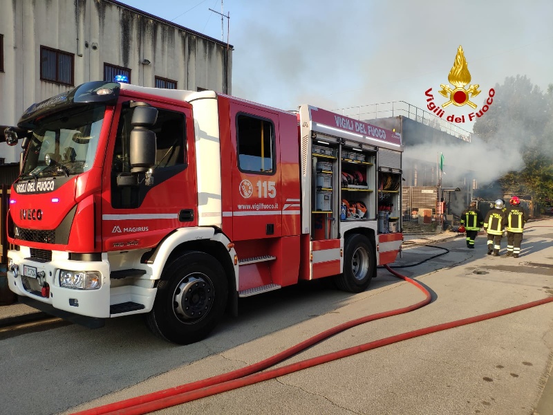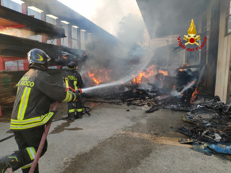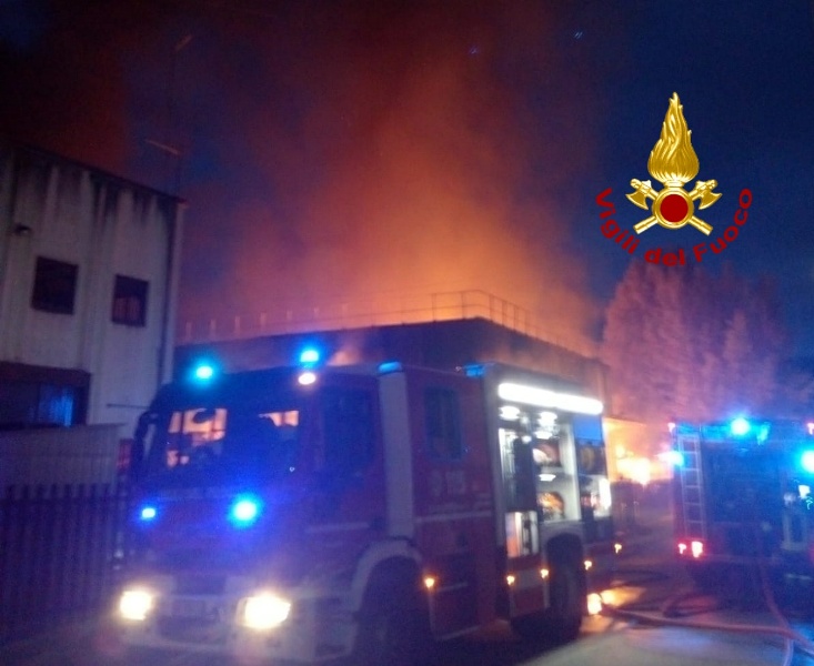 L'incendio della falegnameria di circa 1000 mq. è sotto controllo. A seguito dell'incendio la copertura è collassata. In corso le complesse operazioni di minuto spegnimento e della messa in sicurezza.