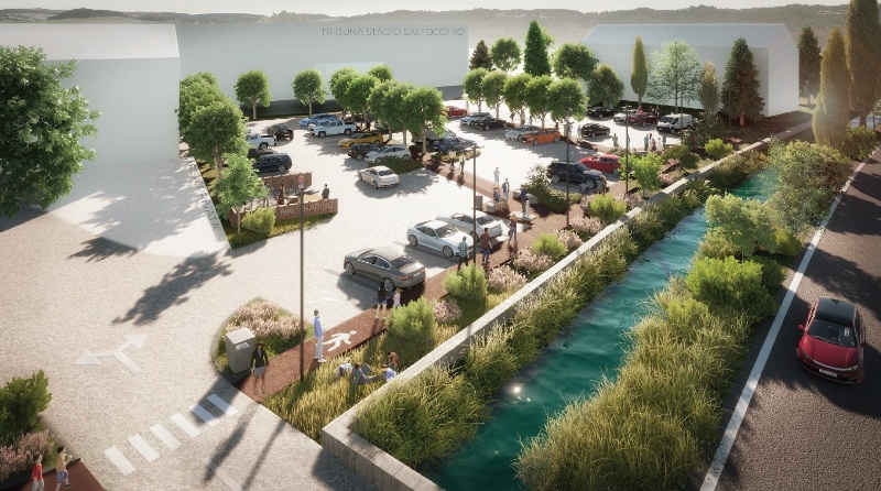 Riqualificazione dello spazio pubblico antistante il campo sportivo di Saltocchio: il parcheggio pubblico sarà integrato con una postazione di bike sharing, stazioni di ricarica per mezzi elettrici, realizzazione di percorsi pedonali protetti tutto per una spesa di 1.1 milioni.
