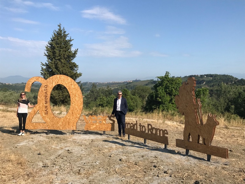 "Per celebrare questo importante evento abbiamo realizzato, grazie alla Melissa srl, un'installazione lungo il percorso della via Francigena che passa da San Quintino, con cui volevamo rappresentare l'anniversario dei 20 anni dell'AEVF e accogliere con un benvenuto tutti i pellegrini che passeranno da qui - commentano il sindaco di San Miniato Simone Giglioli e l'assessore Elisa Montanelli -. Volevamo celebrare questa ricorrenza facendo anche promozione del nostro bellissimo territorio e abbiamo scelto di farlo valorizzando uno dei luoghi più belli e suggestivi di tutto il percorso".