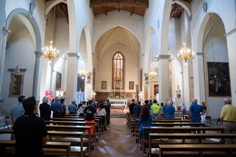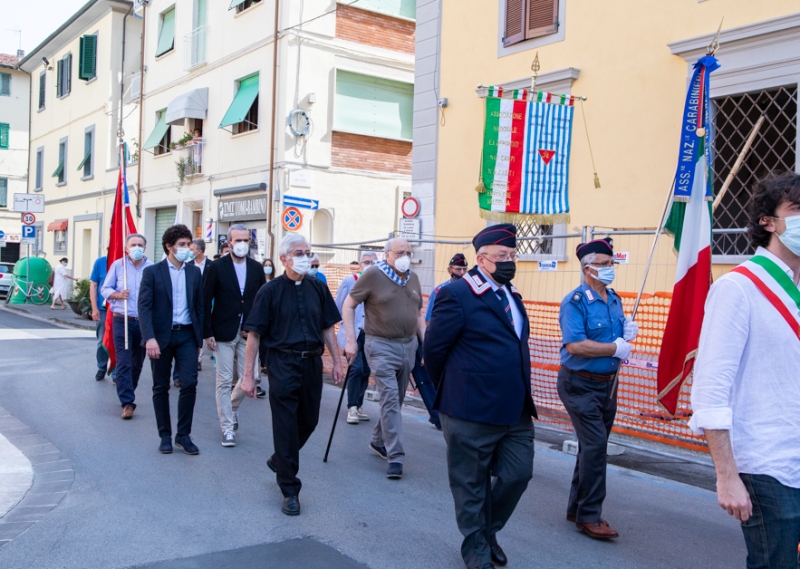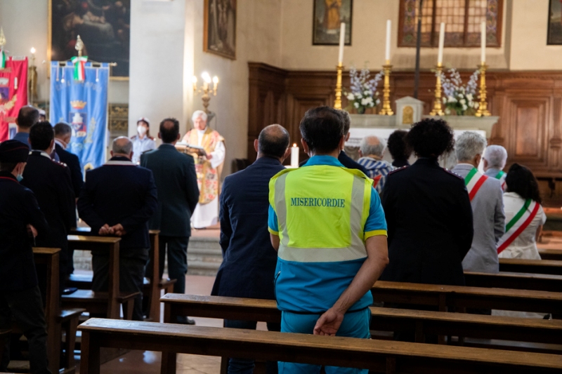 È stata prima celebrata la santa messa nella chiesa di Sant’Agostino, in via dei Neri, scelta non soltanto per motivi organizzativi ma perché rappresenta uno dei luoghi che fu colpito dal passaggio della guerra con la caduta del campanile sul teatro cittadino empolese, il ‘Tommaso Salvini’, che era dove adesso c’è il cinema La Perla.