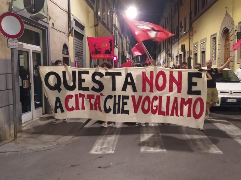 È il grido di battaglia lanciato dai circa duecento di giovani che hanno partecipato ieri sera al corteo organizzato da numerose sigle appartenenti all’area di sinistra – Firenze Antifascista, CPA Fi sud, Krisis, Collettivo Politico di Scienze Politiche, Cantiere Sociale Camilo Cienfuegos, CSA nEXt Emerson, Rifondazione Comunista Firenze, Sinistra Progetto Comune, Partito Comunista sez. Firenze, Rete Antirazzista, Firenze Città Aperta, Occupazione Via del Leone e Partito dei Carc – e che ha sfilato per le vie fiorentine tra piazza Santo Spirito, piazza del Carmine, e piazza Tasso.
