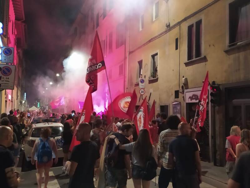 È il grido di battaglia lanciato dai circa duecento di giovani che hanno partecipato ieri sera al corteo organizzato da numerose sigle appartenenti all’area di sinistra – Firenze Antifascista, CPA Fi sud, Krisis, Collettivo Politico di Scienze Politiche, Cantiere Sociale Camilo Cienfuegos, CSA nEXt Emerson, Rifondazione Comunista Firenze, Sinistra Progetto Comune, Partito Comunista sez. Firenze, Rete Antirazzista, Firenze Città Aperta, Occupazione Via del Leone e Partito dei Carc – e che ha sfilato per le vie fiorentine tra piazza Santo Spirito, piazza del Carmine, e piazza Tasso.