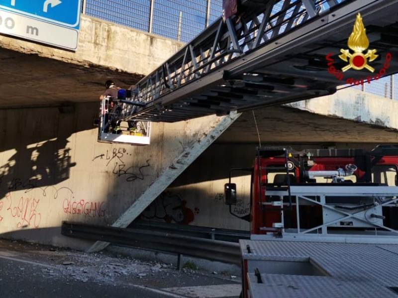 Questa sera a Livorno dei detriti sono caduti dal cavalcavia in località Maroccone. Sul posto stanno intervenendo i vigili del fuoco di Livorno, per verificare lo stato della struttura, con ispezioni anche dall'alto sull'autoscala. La viabilità nei pressi del cavalcavia è al momento interrotta per consentire la messa in sicurezza.