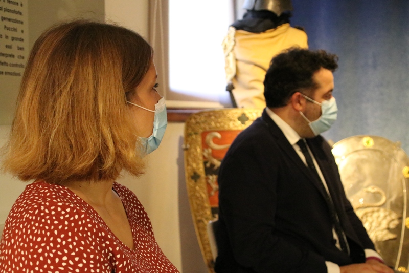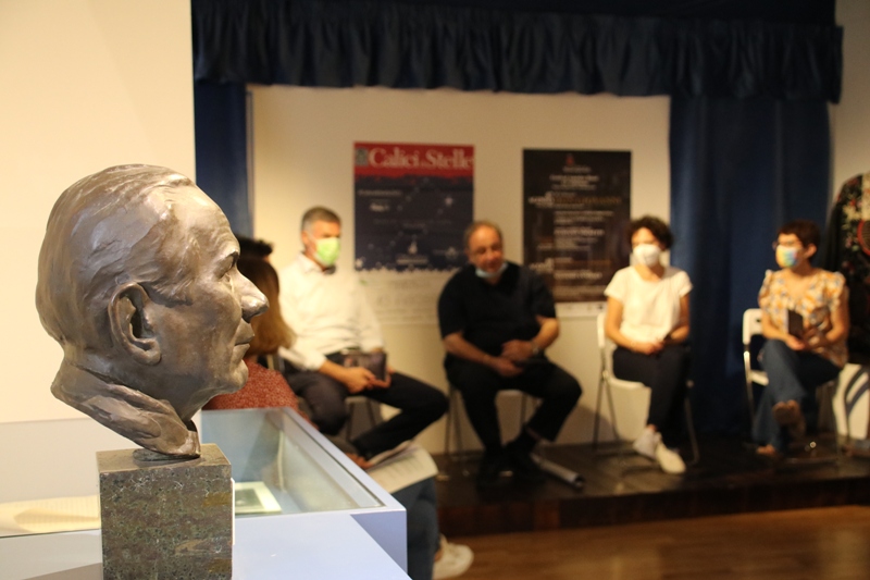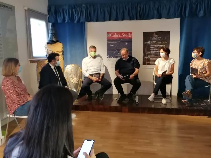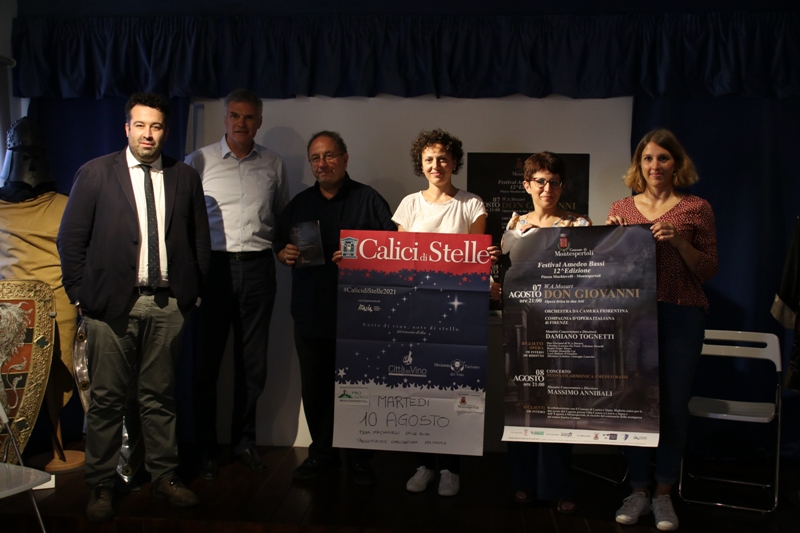 Presenti alla conferenza stampa il Sindaco Mugnaini con l'Assessora alla cultura Alessandra De Toffoli, il Direttore Artistico Giuseppe Lanzetta e il regista Franz Moser, per l'Accademia Musicale "Amedeo Bassi" Melania Minacci e per Calici di stelle la Presidentessa della Pro Loco Benedetta Rigacci.