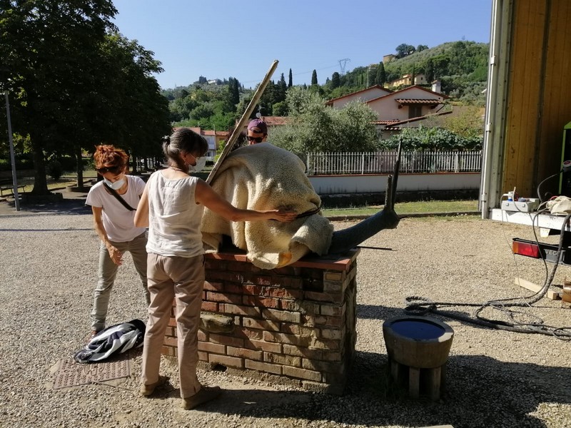 I restauratori dell'Opificio delle pietre dure hanno aggiustato la scultura-fontana a forma di lumaca del Parco Museo Quinto Martini a Seano, che era stata danneggiata nei giorni scorsi.