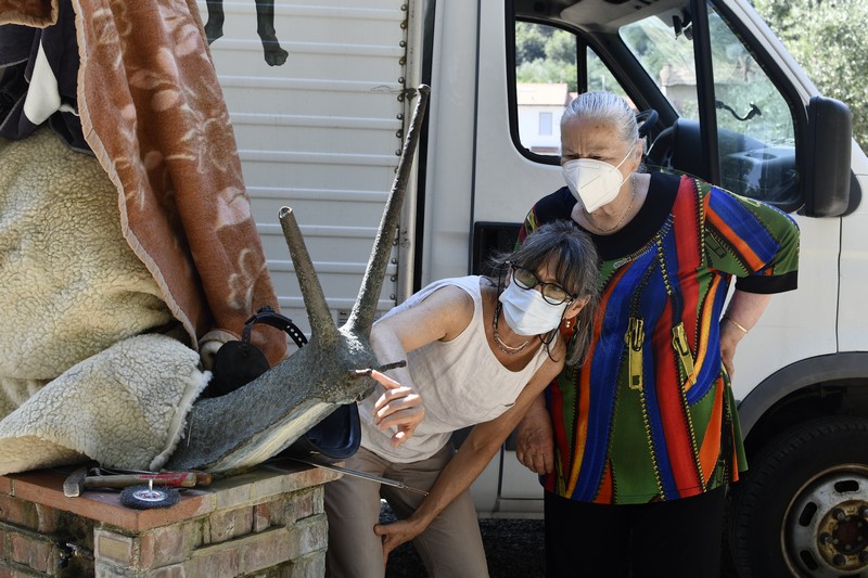 I restauratori dell'Opificio delle pietre dure hanno aggiustato la scultura-fontana a forma di lumaca del Parco Museo Quinto Martini a Seano, che era stata danneggiata nei giorni scorsi.