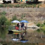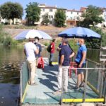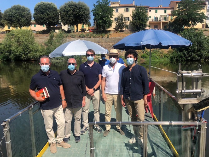 Sul traghetto che, manovrato da volontari della Canottieri Limite, per tutta l’estate effettuerà regolare servizio pubblico tre volte a settimana muovendosi lungo una fune fissata sulle due sponde, sono saliti oggi Marco Bottino e Maurizio Ventavoli presidenti rispettivamente del Consorzio di Bonifica Medio e Basso Valdarno, competenti in quel tratto ciascuno su una delle due sponde, il sindaco di Capraia e Limite Alessandro Giunti, il vicesindaco di Empoli, Fabio Barsottini, e Luca Cecchi, segretario società Canottieri Limite.