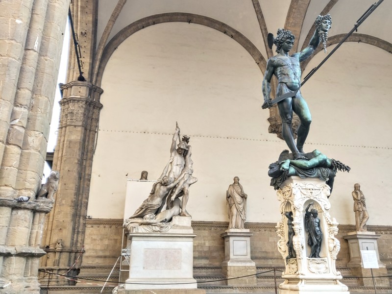 Più candida, più levigata, più “in salute”. Appare così la ‘pelle’ delle statue della Loggia dei Lanzi, dove sono appena terminate delicate operazioni di cura e conservazione del patrimonio scultoreo del celeberrimo angolo di piazza Signoria. I lavori, condotti da una squadra di specialisti delle Gallerie degli Uffizi (delle quali la Loggia costituisce una sorta di sala ‘all’aperto’) hanno interessato tutte le sculture, da quelle romane a quelle rinascimentali del Cellini e del Giambologna a quella ottocentesca di Pio Fedi. Si tratta di un intervento annualmente programmato dal museo: obiettivo, eliminare i materiali che tendono a depositarsi sulla superficie delle statue, mantenendone dunque la ‘pelle’ più leggibile, bella e sana.