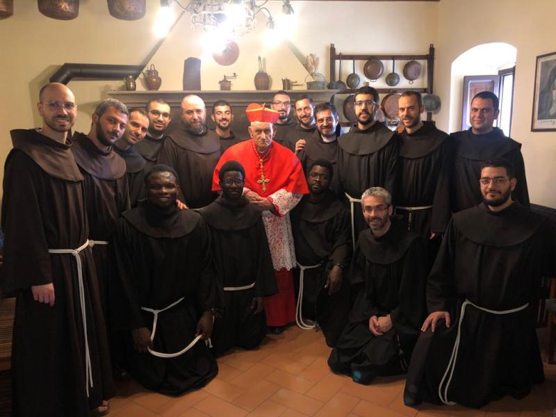 Il Cardinale è stato accolto da Padre Francesco Brasa, padre guardiano del Con-vento, dai confratelli e novizi, all’interno del Convento, si è svolta la tradizionale processione, verso la cappella delle stigmate di San Francesco.