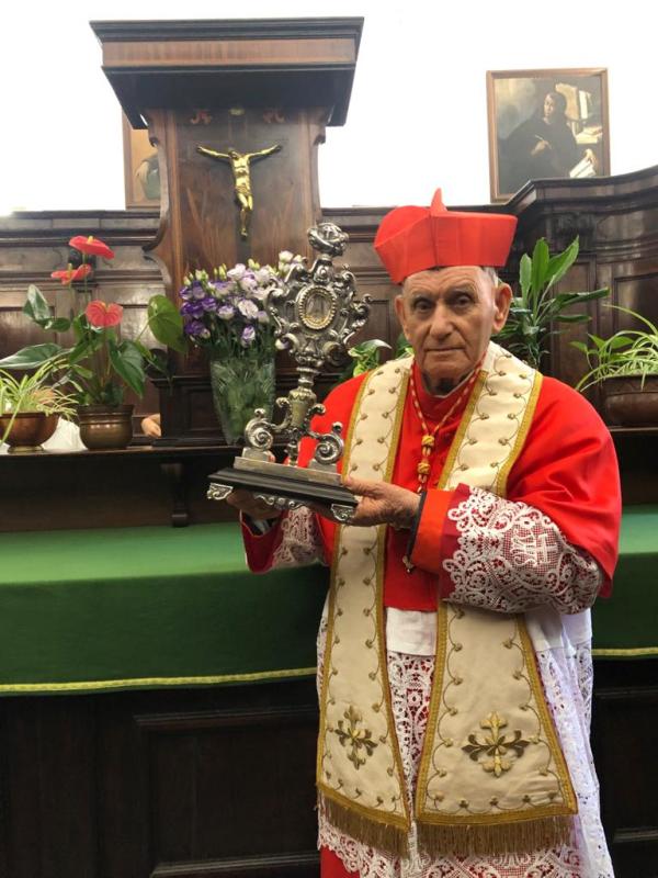 E’ la prima volta nei Suoi 92 anni che il porporato albanese, sale le Montagne Ca-sentinesi per raggiungere il Santuario Francescano della Verna, dove il 16 settem-bre del 1224 San Francesco d’Assisi, ricevette le stigmate dopo 40 giorni di digiuno e penitenze in preparazione alla Festa di San Michele Arcangelo, ricevendole pro-prio mentre era assorto nella preghiera. “Grande onore, poter essere al Santuario della Verna - ha affermato il Cardinale Simoni - proprio nella solennità del “Perdono di Assisi”, veramente bello poter esser in questo luogo santo, lucrare l’indulgenza plenaria, immenso dono concesso dalla Santa Chiesa ogni primo e due agosto di ogni anno. Sempre una gioia spirituale stare con i miei confratelli francescani, poiché fin da bambino sono stato nella “famiglia francescana” dei frati minori, alla quale mi sento fortemente legato"