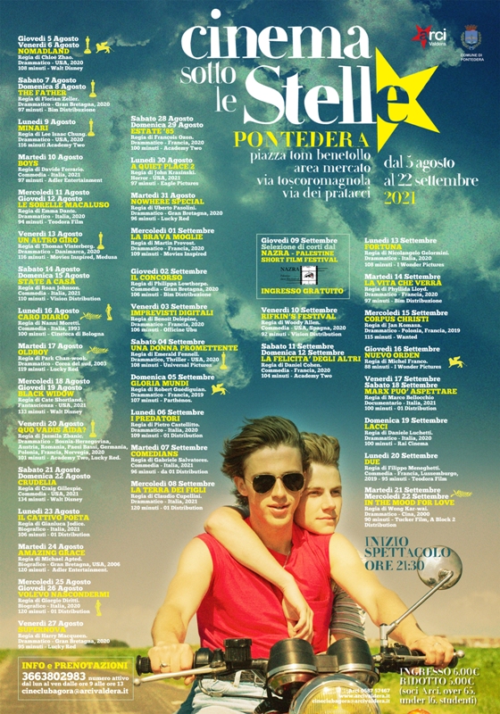 Anche quest’anno riparte l’arena del Cinema Sotto Le Stelle a Pontedera, organizzato da Arci Valdera e Comune di Pontedera con una grande selezione di cinema, dai migliori titoli premiati ai festival internazionali, alle ultime uscite, fino ai titoli cult.
