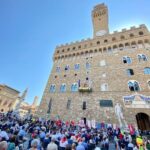 Alle 9 a Palazzo Vecchio, lato via dei Gondi, è stata deposta una corona di alloro alla lapide dettata da Piero Calamandrei a ricordo della Liberazione, mentre alle 10 in piazza dell’Unità italiana, con l’organizzazione e il coordinamento a cura dell’Istituto geografico militare, Ente dell’Esercito italiano, in collaborazione con il Comune di Firenze, è stata deposta una corona di alloro da parte delle autorità civili, religiose e militari al monumento ai caduti di tutte le guerre alla presenza dei Gonfaloni di Firenze, della Regione Toscana, della Città metropolitana e dei vari Comuni dell’area fiorentina, oltre ai labari della federazione delle associazioni partigiane e della associazioni d’arma e combattentistiche. A seguire, alle 10.30, sull’arengario di Palazzo Vecchio, si sono tenute le celebrazioni ufficiali con gli interventi del sindaco Dario Nardella, di un rappresentante della Gkn, della presidente dell’Anpi Firenze Vania Bagni e dei sindaci di alcuni Comuni, che sono stati teatro delle stragi nazifasciste: durante la cerimonia hanno preso la parola i primi cittadini di Cavriglia Leonardo Degl’Innocenti, di Marzabotto Valentina Cuppi, di Stazzema Maurizio Verona e di Monsummano Terme Simona De Caro.