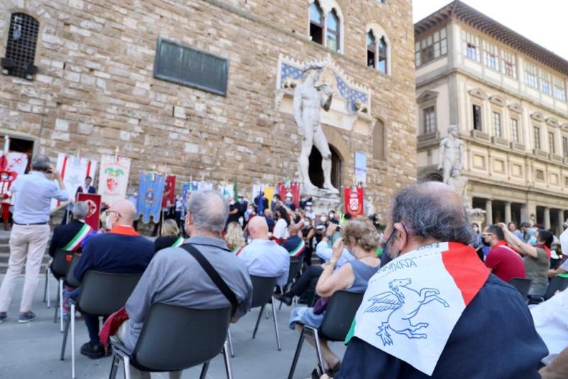 Da allora sono passati 77 anni ma siamo sempre qui in piazza della Signoria a ricordare quel momento come monito e segno di speranza. Non smetteremo mai di ringraziare chi ha permesso tutto questo. Quei "centomila morti" che sono oggi rappresentati nella nostra "legge".