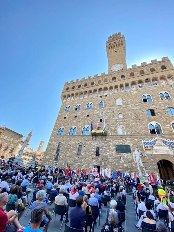 Da allora sono passati 77 anni ma siamo sempre qui in piazza della Signoria a ricordare quel momento come monito e segno di speranza. Non smetteremo mai di ringraziare chi ha permesso tutto questo. Quei "centomila morti" che sono oggi rappresentati nella nostra "legge".
