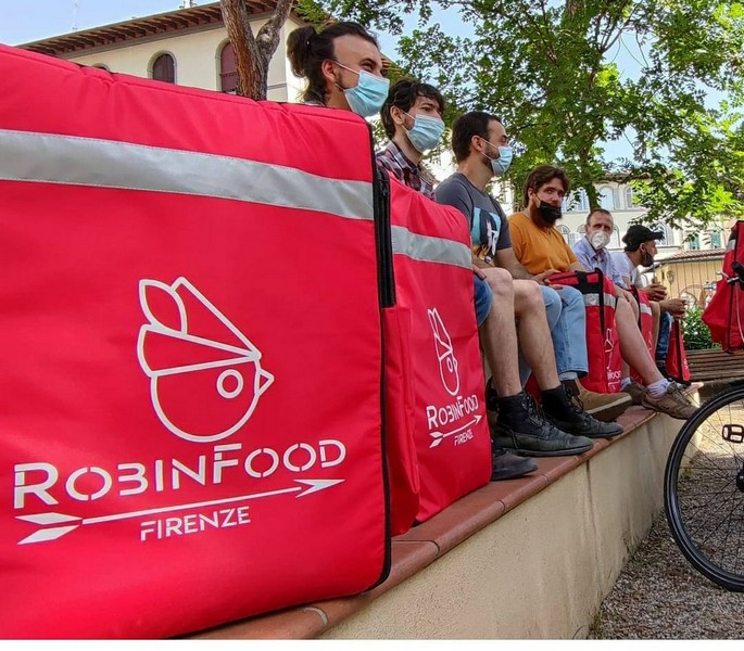 Simone Di Giulio, Luca Manetti, Nadim Hammami, Duccio D’Agnano, Salvatore Settimo Micciché, Alessandro Fabbri, Mahmad Bakro hanno lasciato le multinazionali per cui lavoravano come rider e hanno scelto di costruire un modello alternativo: è nata così la cooperativa di delivery fiorentina Robin Food, autogestita appunto dai 7 giovani, tutti under 35.